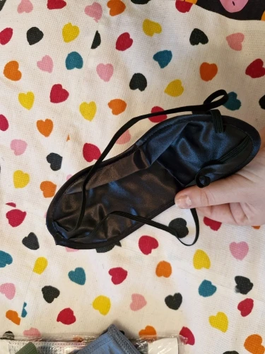 Je m'attendais à ce qu'il soit plus grand en taille, mais il est cousu avec un tissu spécial pour empêcher la lumière de pénétrer dans les yeux par le bas. J'espère que les bandes élastiques vont s'étirer un peu. le tissu est agréable au toucher.